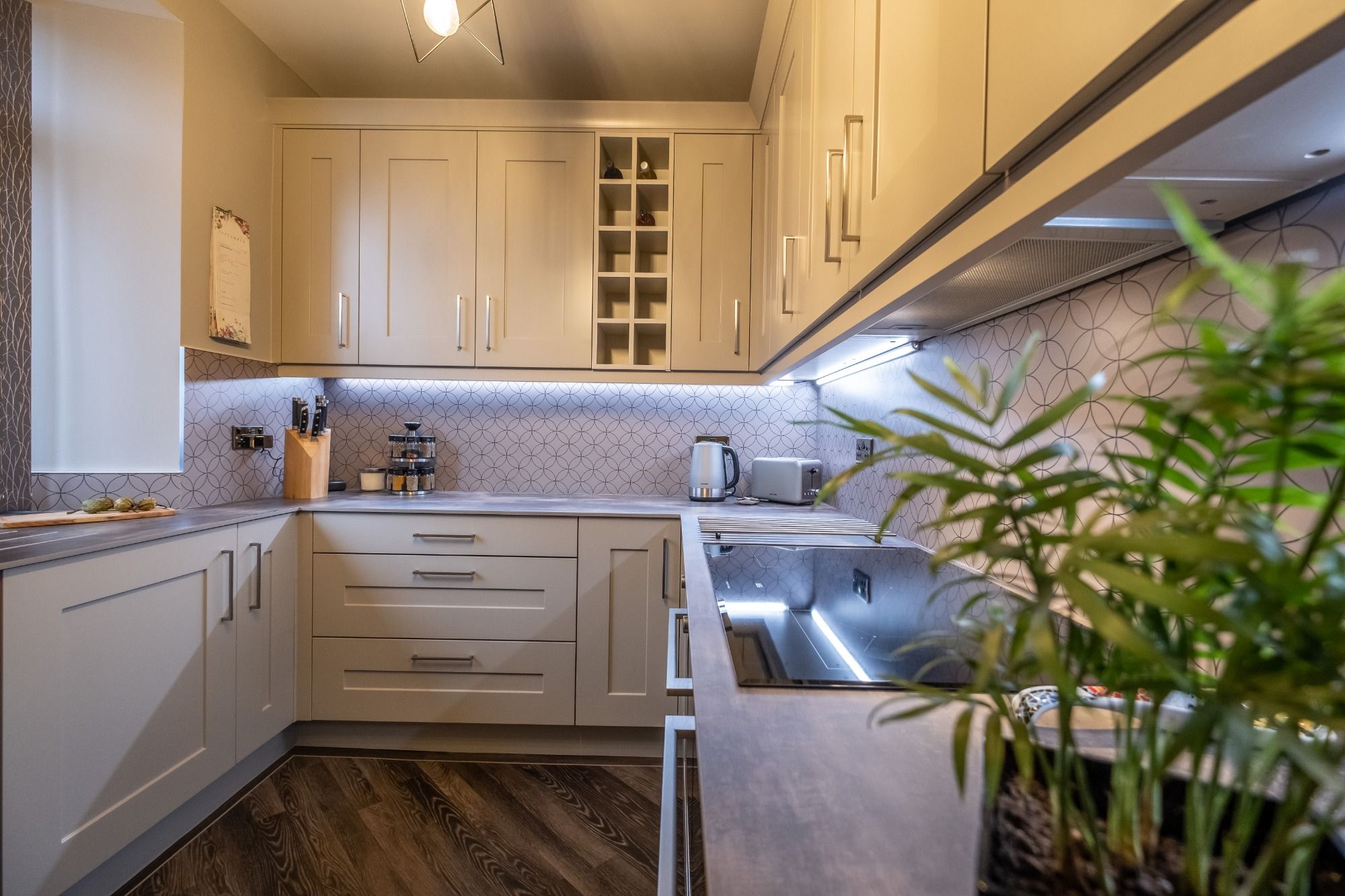 Fitzroy Matt Stone doors with Zenith Painting Brown worksurfaces