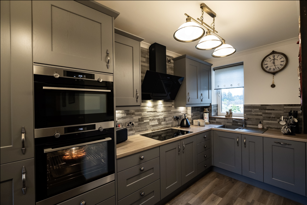 Monarch Painted Dust Grey doors with Grey Bardolino Oak worktops